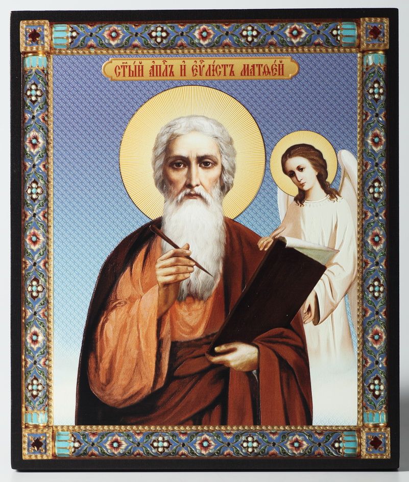 Икона на доске 22х26 объёмная печать, лак Матфей Евангелист