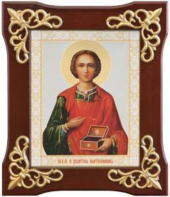 Икона ПАНТЕЛЕИМОН Целитель, Великомученик (ДЕРЕВЯННАЯ РАМКА)
