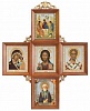 Икона-Крест Троица, Спаситель, Казанская, Николай Чудотворец, Сергий Радонежский (ДЕРЕВЯННАЯ РАМКА)
