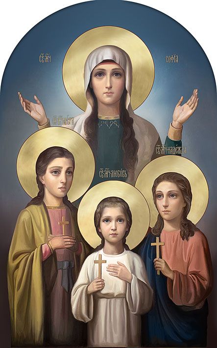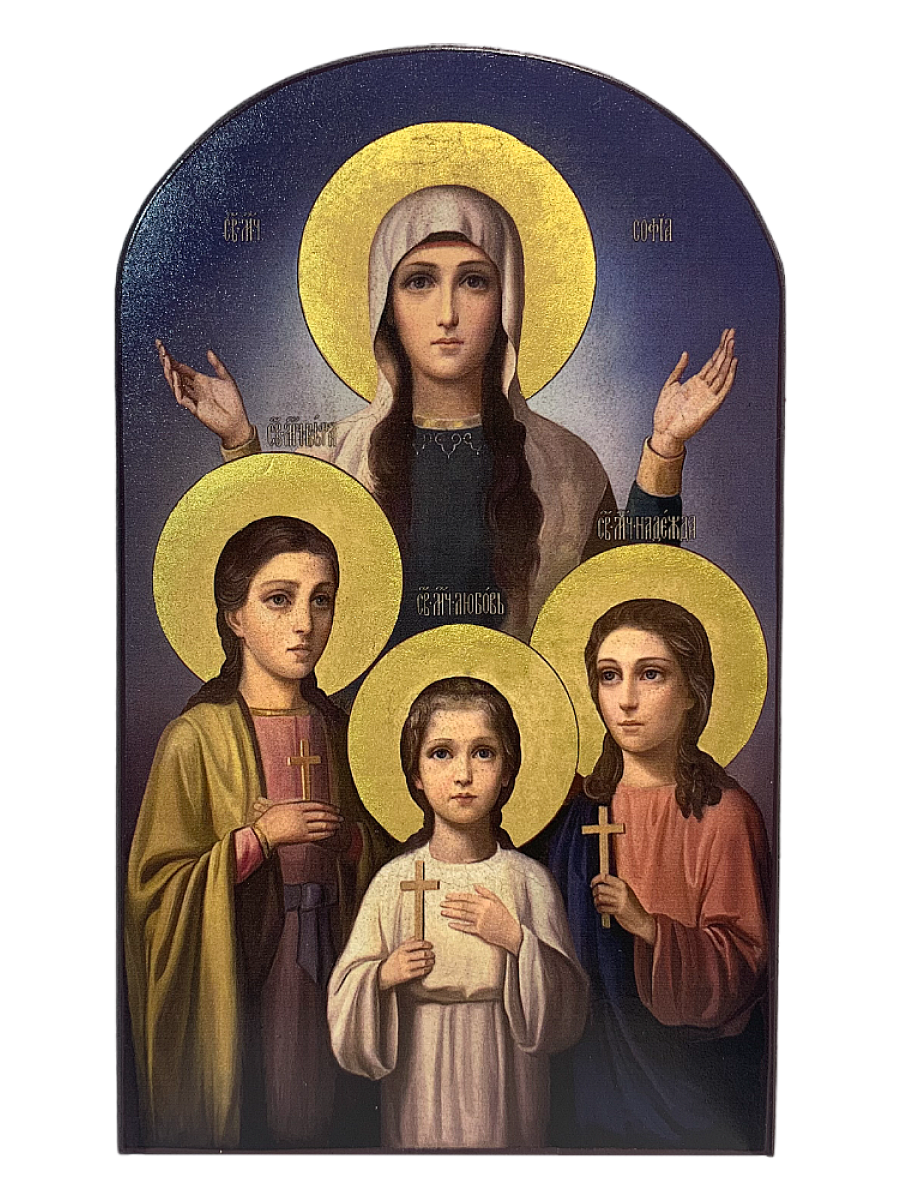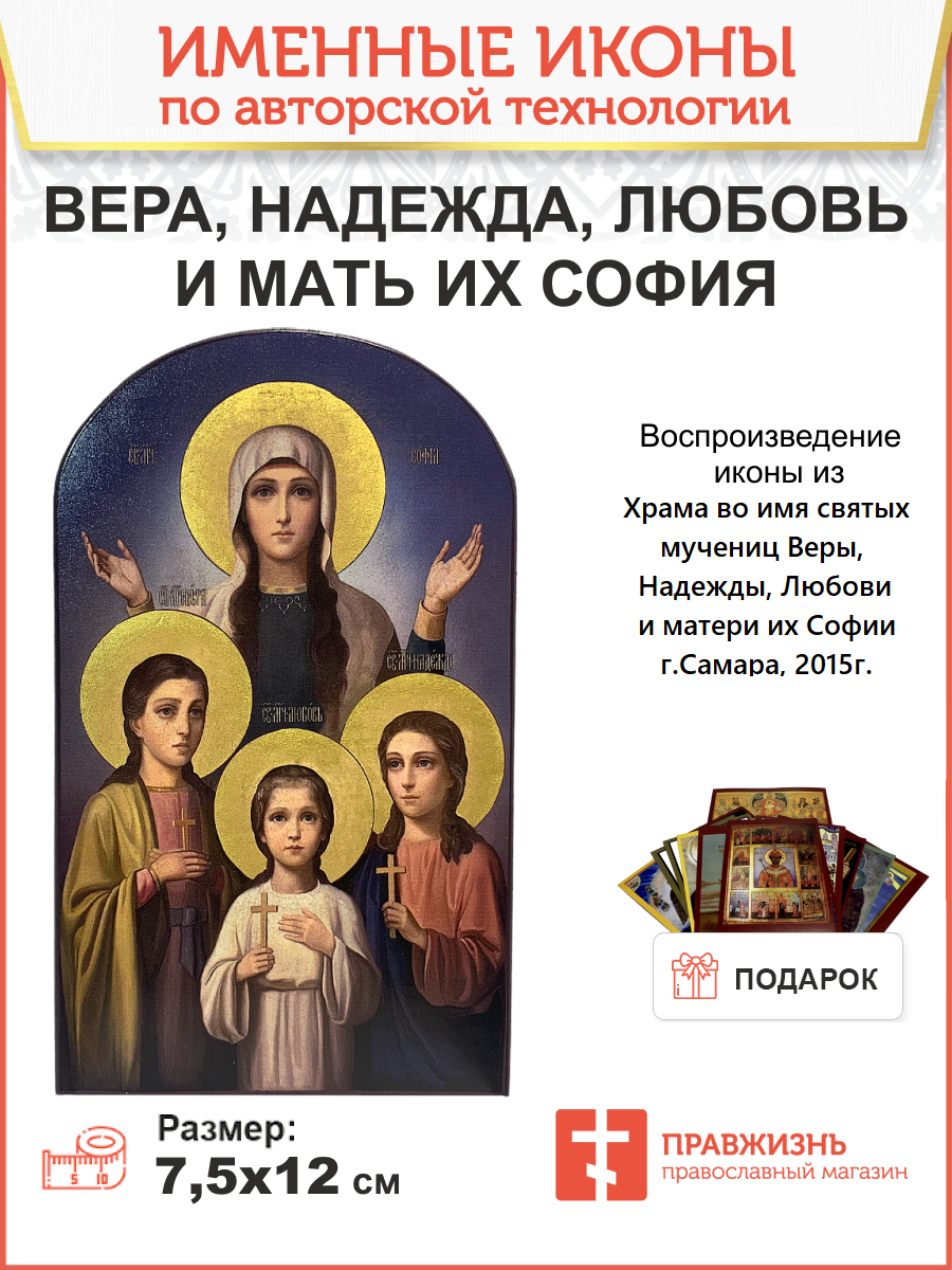 Икона Вера, Надежда, Любовь и мать их София, авторская технология 9х12 см