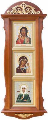 Киот тройной вертикальный Спаситель, Казанская, блаженная Матрона Московская