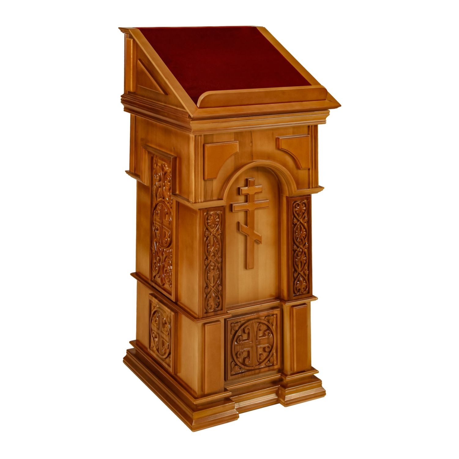 Аналой №11-1 представляет собой высокий узкий стол с покатым верхом. На христианский аналой разрешено положить иконку или книгу для чтения. Церковный и одновременно загадочный аналой будет неотъемлемым атрибутом не только лишь Храма, но и семейного молельного уголка. В важные церковные празднества на аналой вы сможете установить икону с ликом святого и после совершения церковного празднества вынести в середину Церкви, в случае если аналой планируется использовать в Храме. В нашем православном интернет магазине вы в любое время можете купить аналой для Храма или дома.