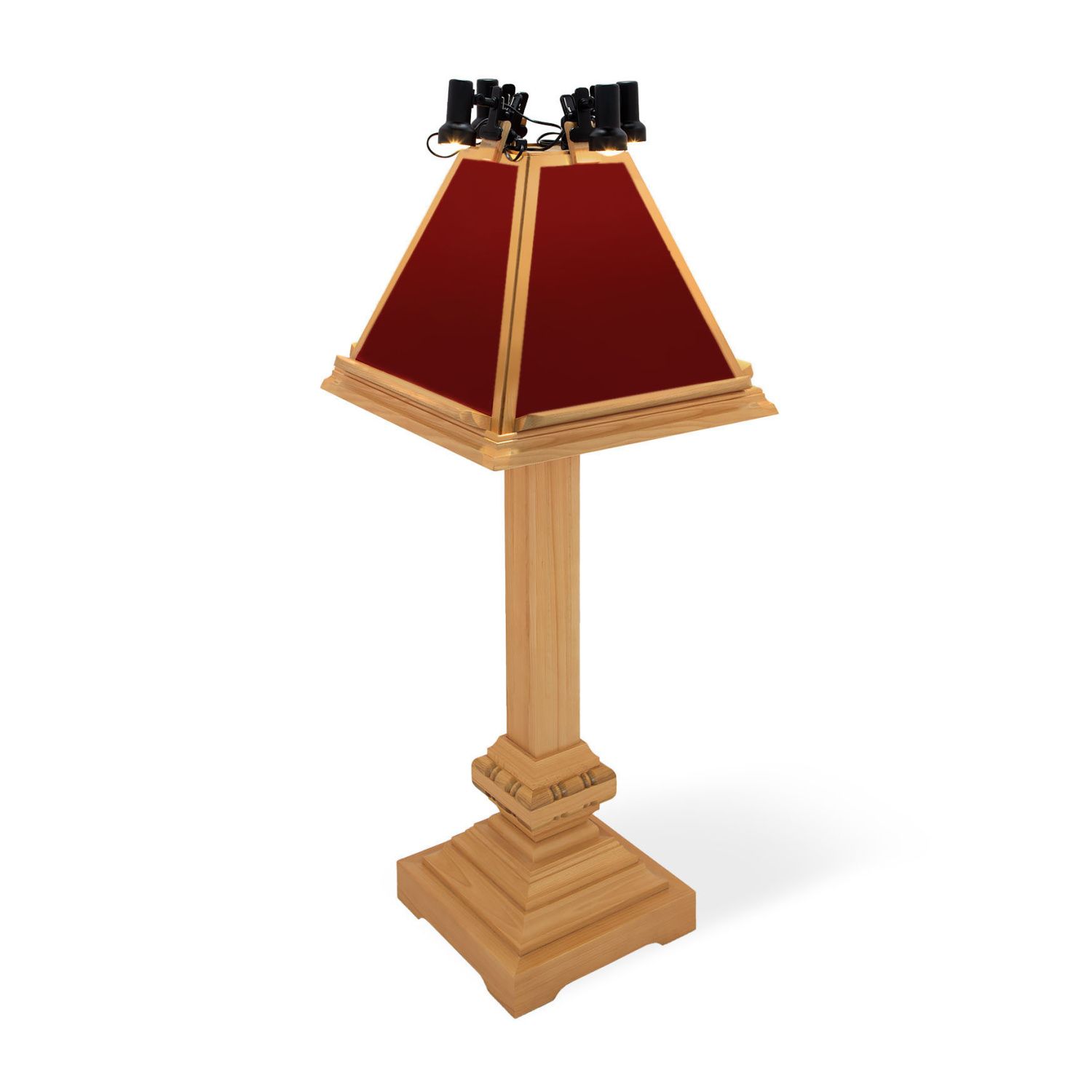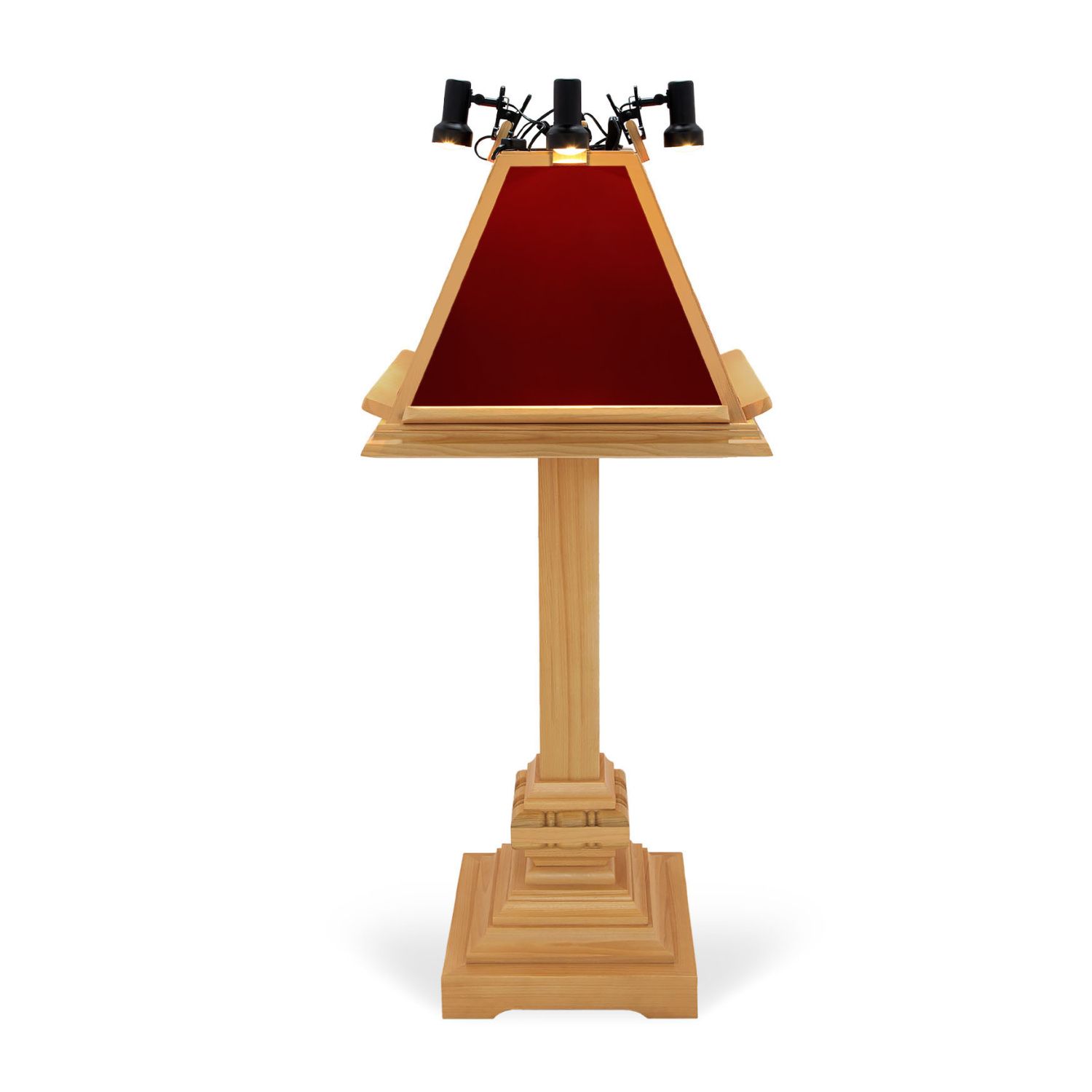 Аналой № 2 с лампами представляет внешне высокий узкий стол с покатым верхом. На церковный аналой разрешено положить иконку или духовную литературу для чтения. Величественный и одновременно с этим загадочный аналой будет важным атрибутом не только Церкви, но и домашнего молельного уголка. В православные церковные праздники на аналой вы можете установить икону с ликом святого и после совершения православного празднества вынести в центр Храма, в том случае если аналой планируется использовать в Храме. В нашем православном онлайн магазине вы всегда сможете найти аналой для Храма или дома.