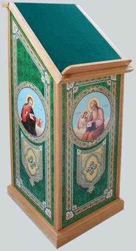 Аналой № 5-2 представляет из себя большой столик с наклонным верхом. На христианский аналой разрешено установить иконку или книгу для чтения. Величественный и одновременно с этим таинственный аналой станет неотъемлемым атрибутом не только лишь православного Храма, но и семейного молельного уголка. В православные церковные праздники на аналой вы сможете положить икону с образом святого и впоследствии совершения церковного празднества вынести в середину Храма, в случае если аналой планируется использовать в Храме. В нашем православном интернет магазине вы в любое удобное время можете заказать аналой для Храма или дома.