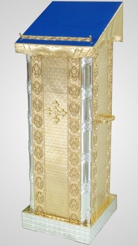 Аналой басменный никель с золочением представляет собой высокий узкий стол с покатым верхом. На христианский аналой можно положить иконку или духовную литературу для чтения. Церковный и одновременно загадочный аналой будет главным атрибутом не только Храма, но и семейного молитвенного уголка. В важные церковные празднества на аналой вы можете положить икону с образом святого и после окончания православного праздничного таинства вынести в середину Церкви, в том случае если аналой планируется использовать в Храме. В нашем православном интернет магазине вы в любое удобное время можете найти аналой для Храма или дома.