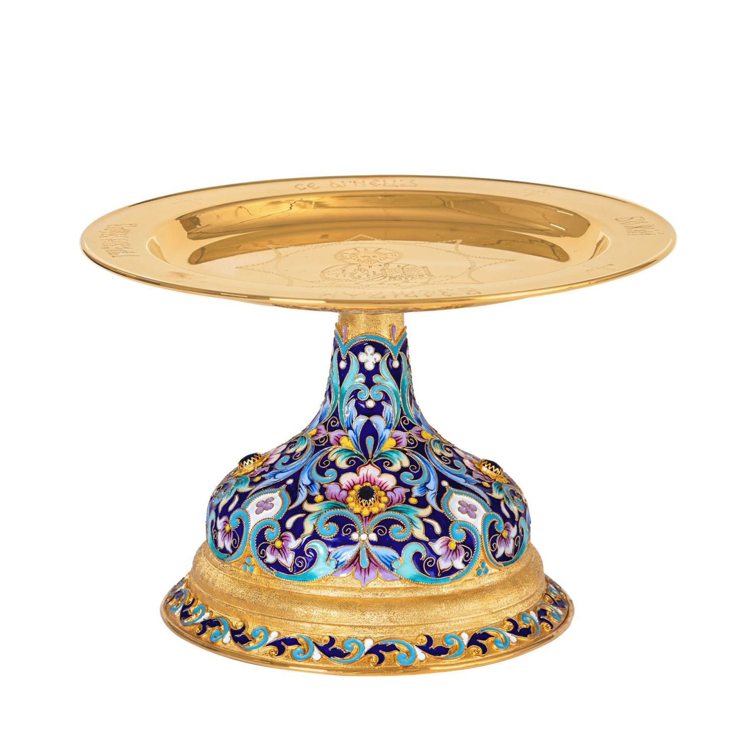 Дискос с поддискосником / ф240мм-песочные часы 1, 0л потира / филигрань, эмаль, роспись, ручная гравировка / золочение