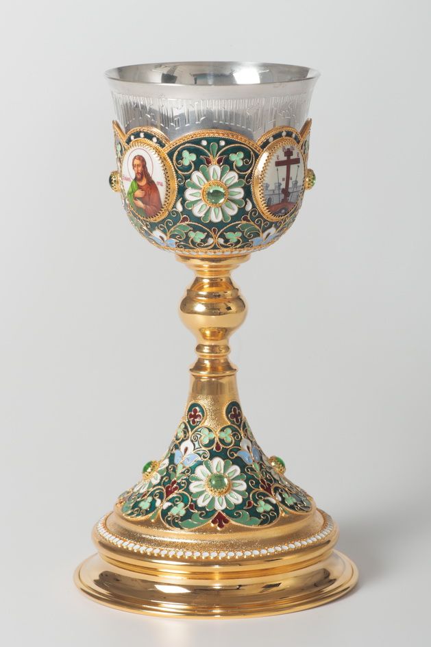 Потир 0.5л 4-финифти, филигрань, эмаль / золочение / серебряный стакан (УИН)
