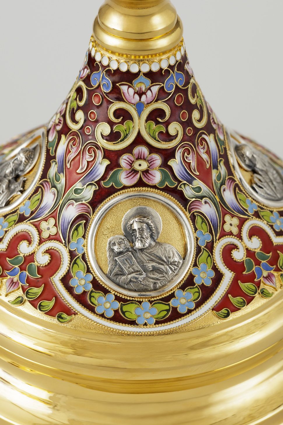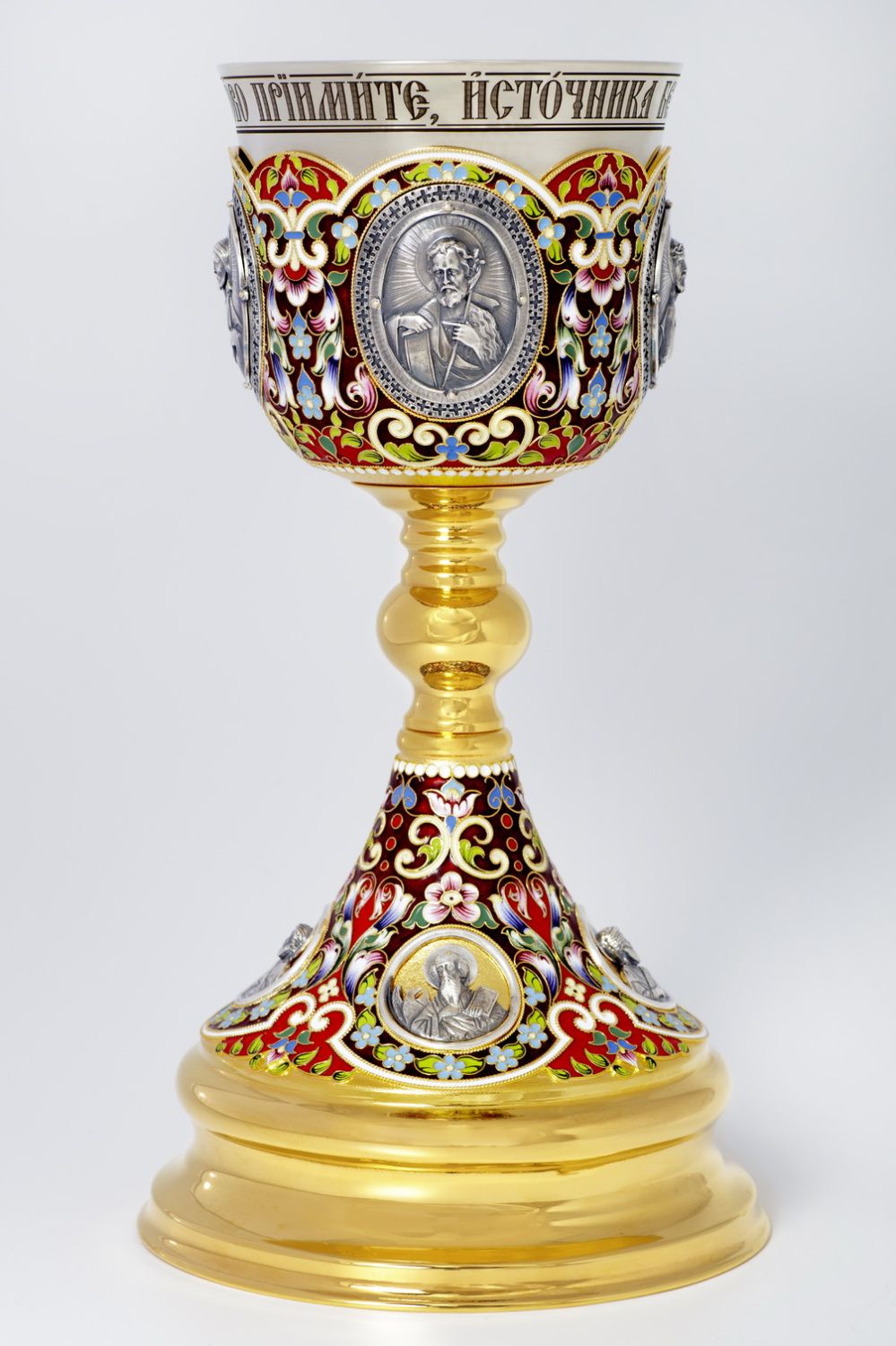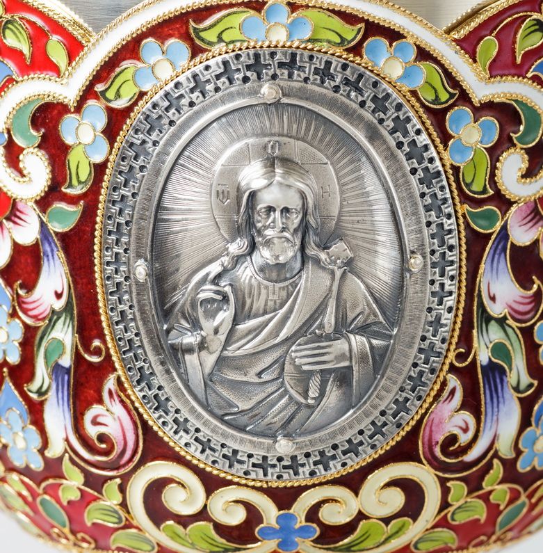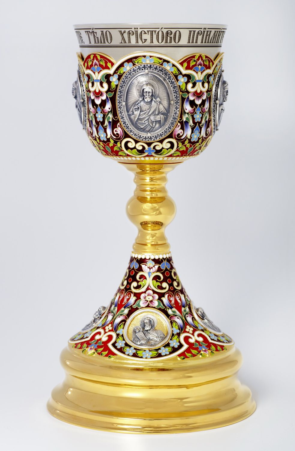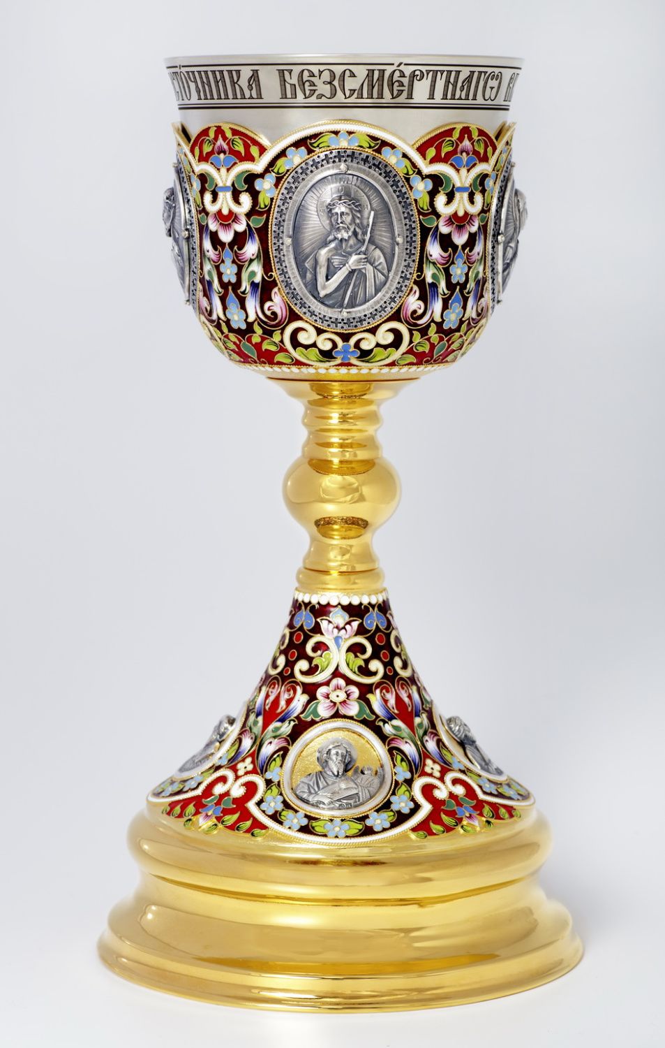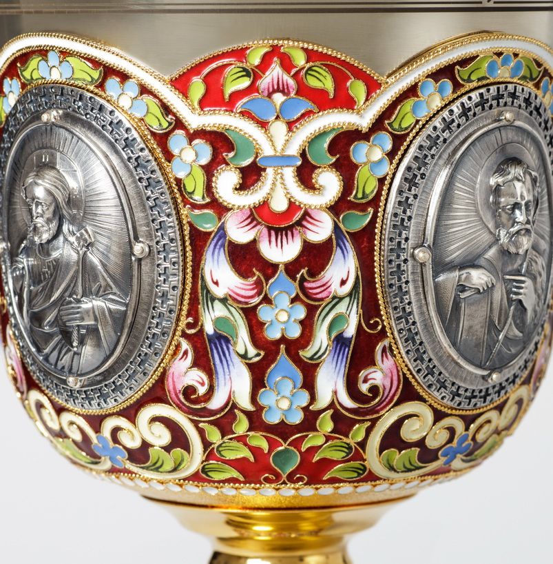 Потир 1.0л 8-литьевых ликов, филигрань, эмаль, роспись, золочение, мельхиоровый стакан