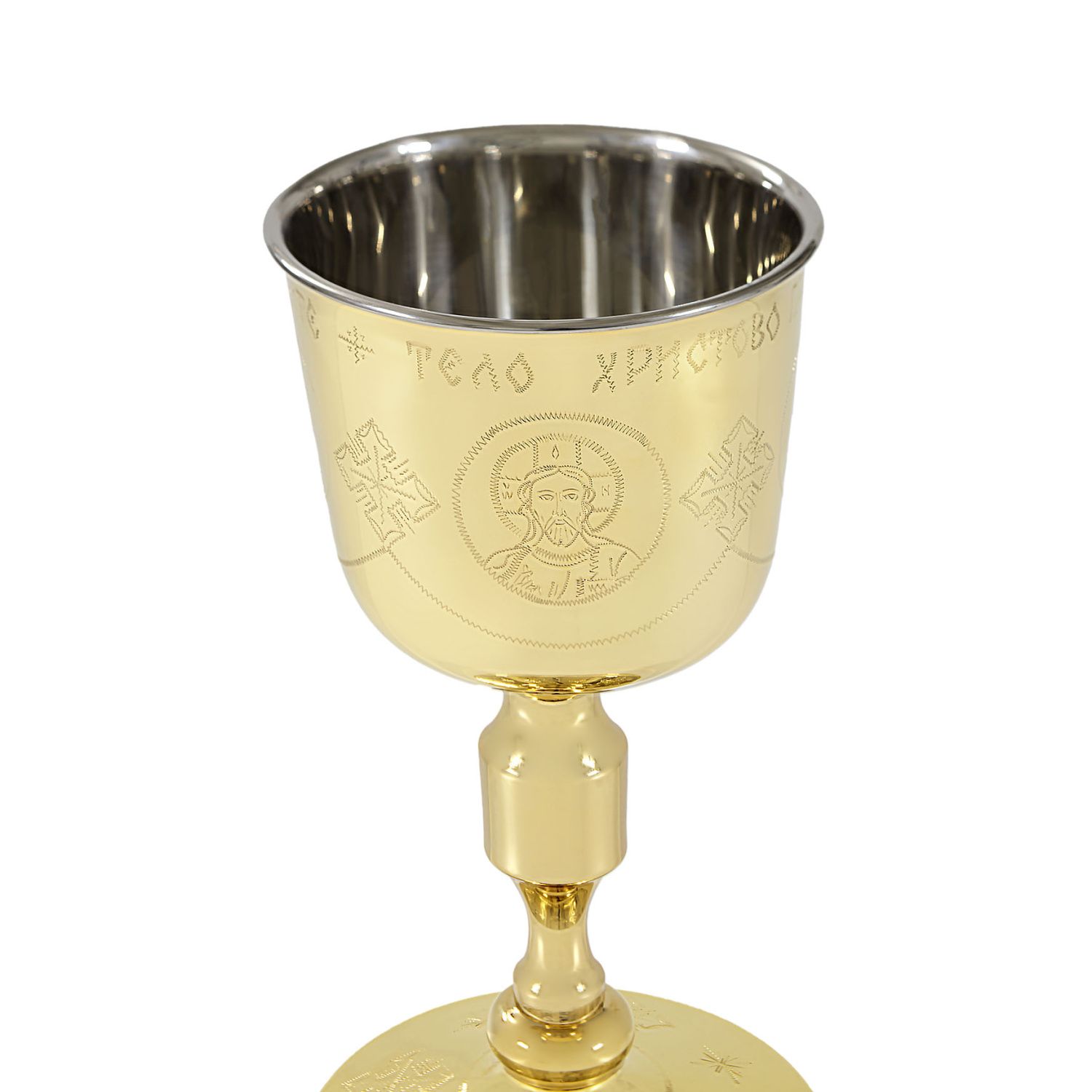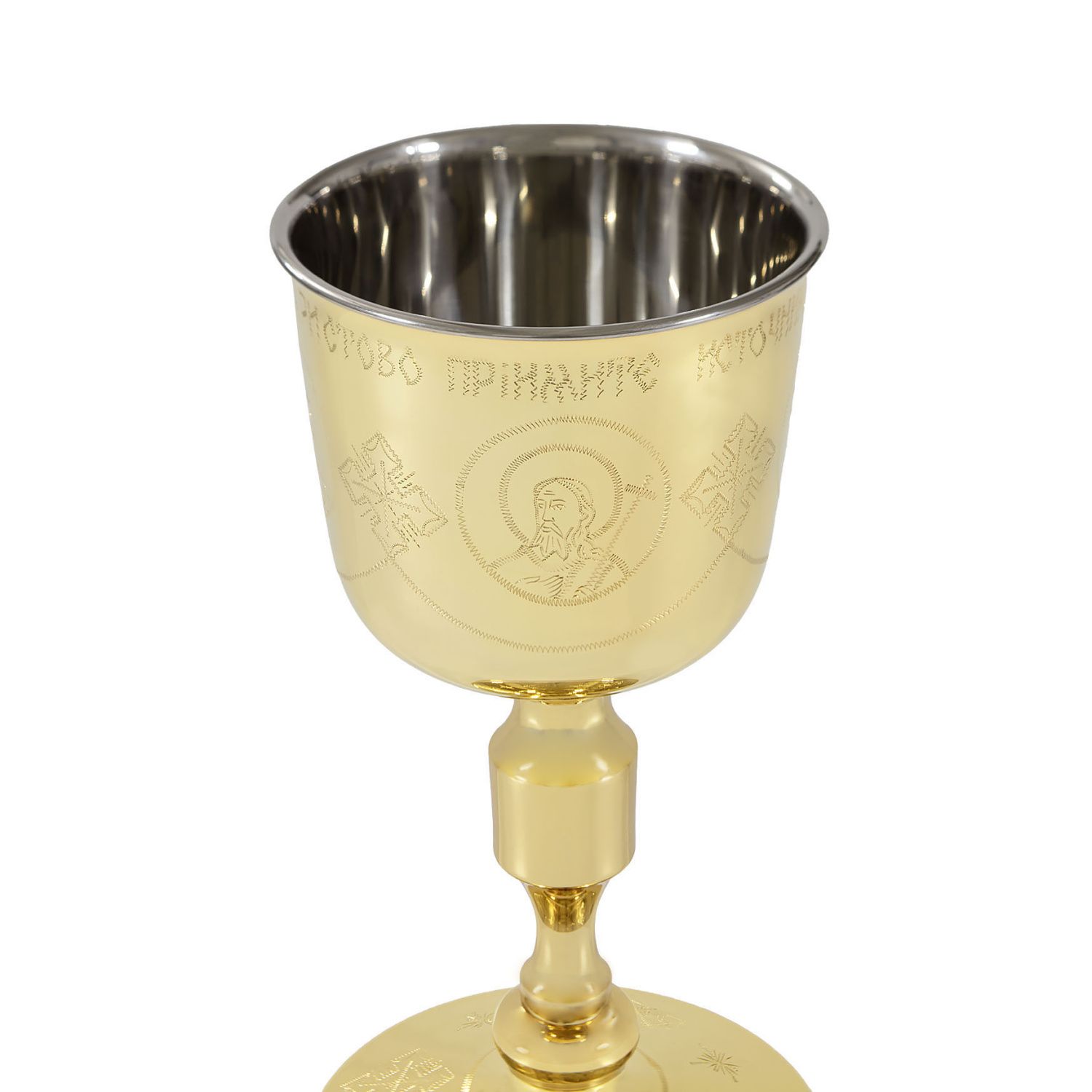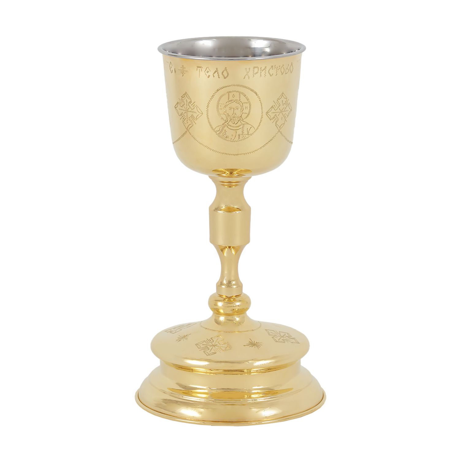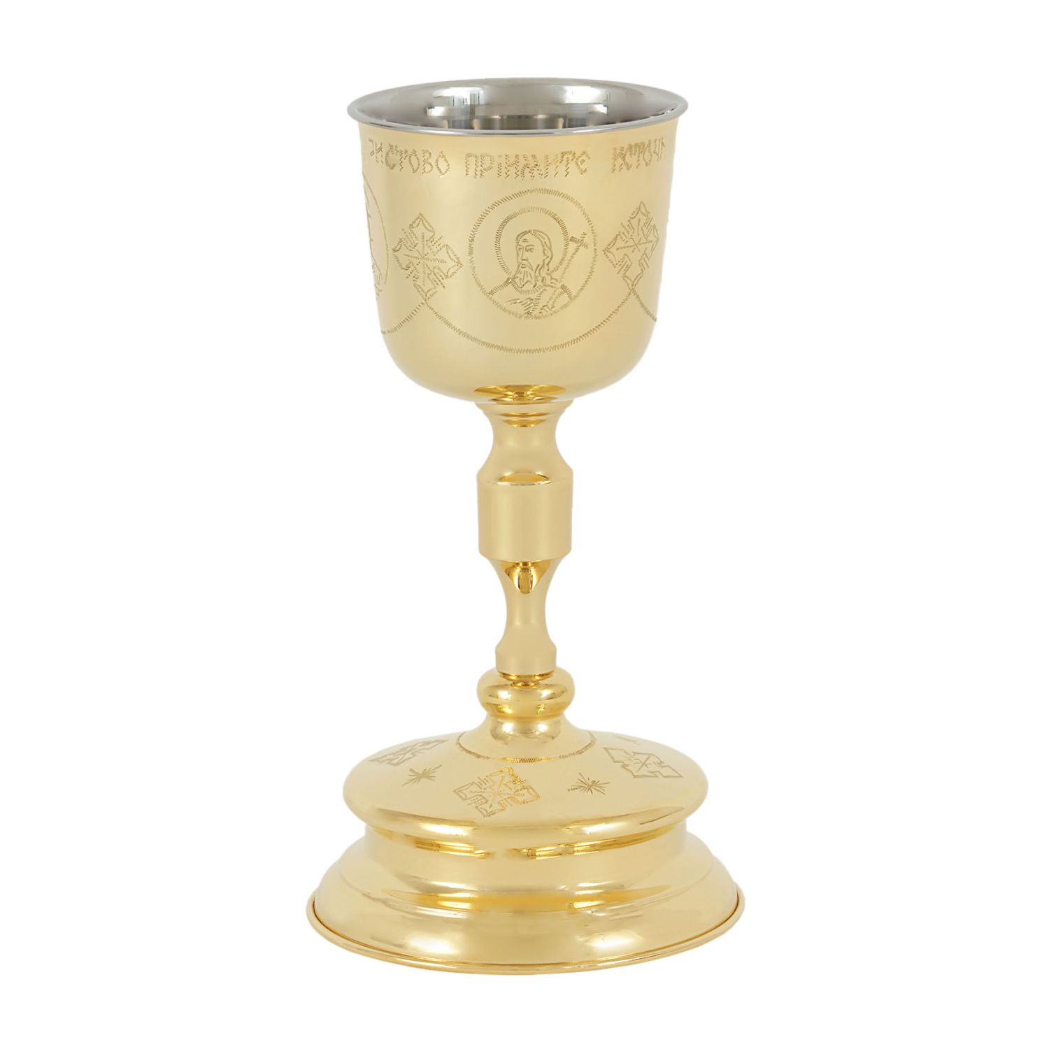 Потир-чаша №3 1, 0л с вкладышем (нерж. сталь) ручная гравировка золочение