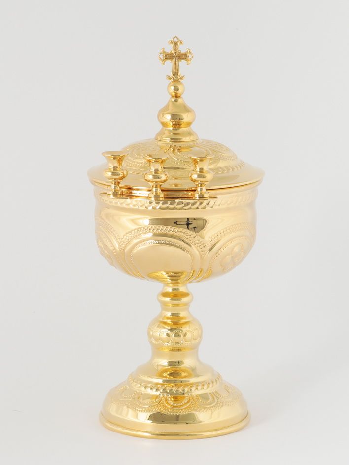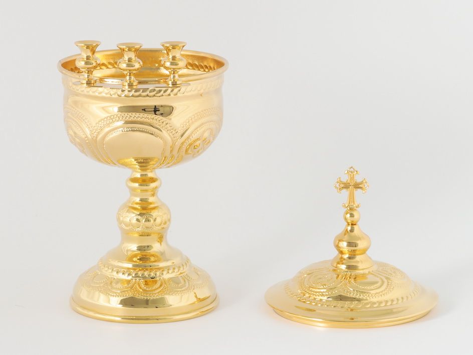 Чаша водосвятная №1 со светильниками чеканка золочение