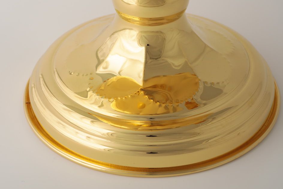 Водосвятная чаша от популярного производителя. Изделие изготовлено из одного из популярнейших драгоценных металлов – золота. Произведено в России! Чаша дополнительно украшена позолотой и чеканкой. Подарочная упаковка в комплекте.