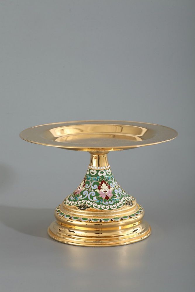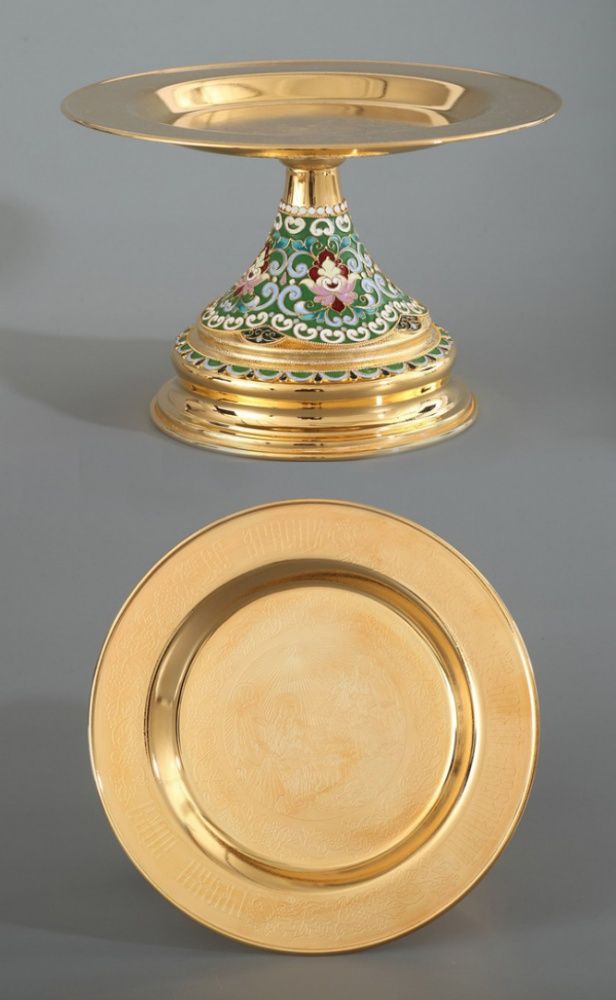 Дискос с поддискосником / ф220мм-конус потира 0, 5л / филигрань, эмаль / золочение