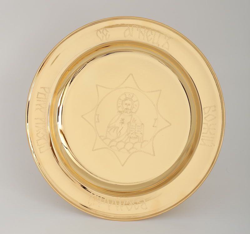 Дискос с поддискосником / ф240мм-конус потира 0, 5л / филигрань, эмаль, 4-финифти, ручная гравировка / золочение