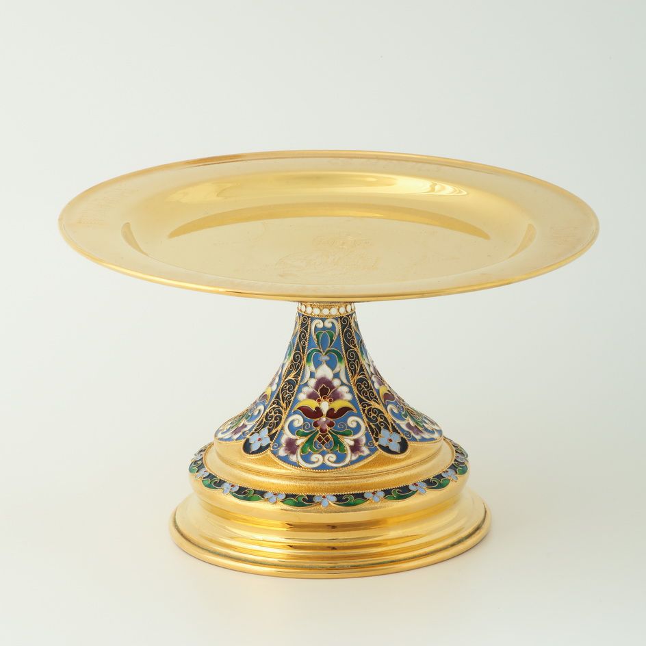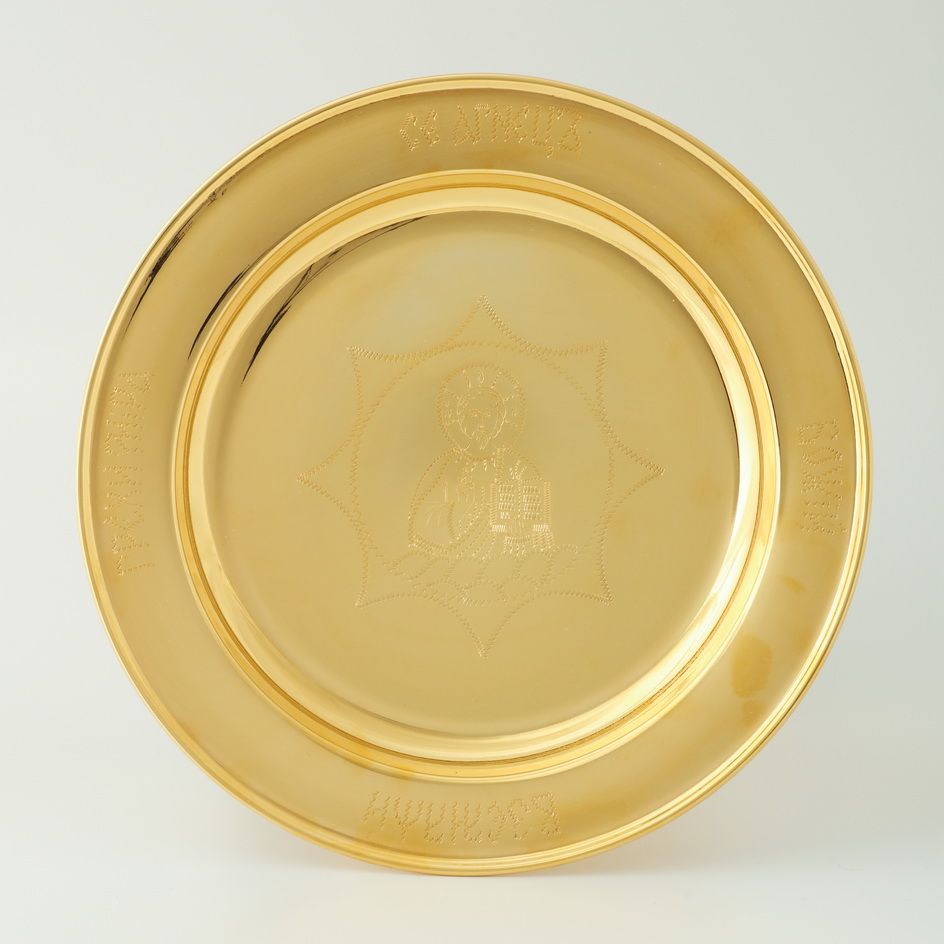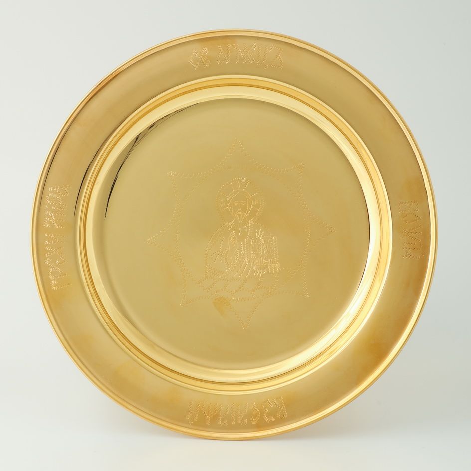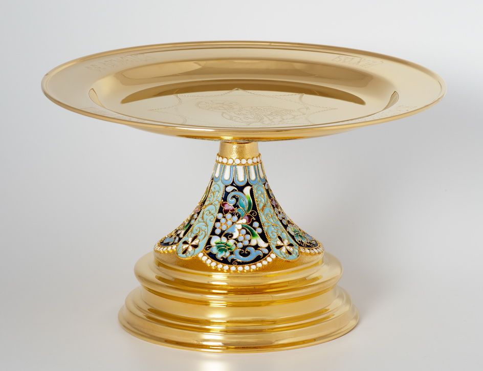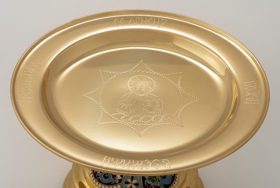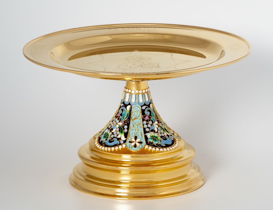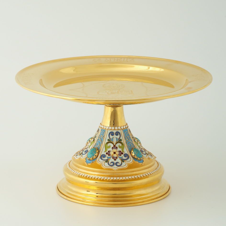 Дискос с поддискосником / ф240мм-конус потира 0, 5л / филигрань, эмаль, ручная гравировка / золочение