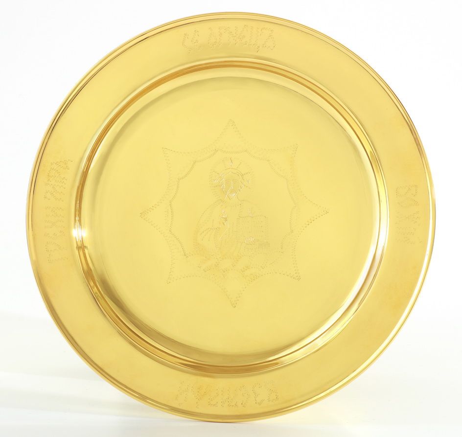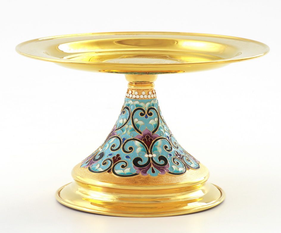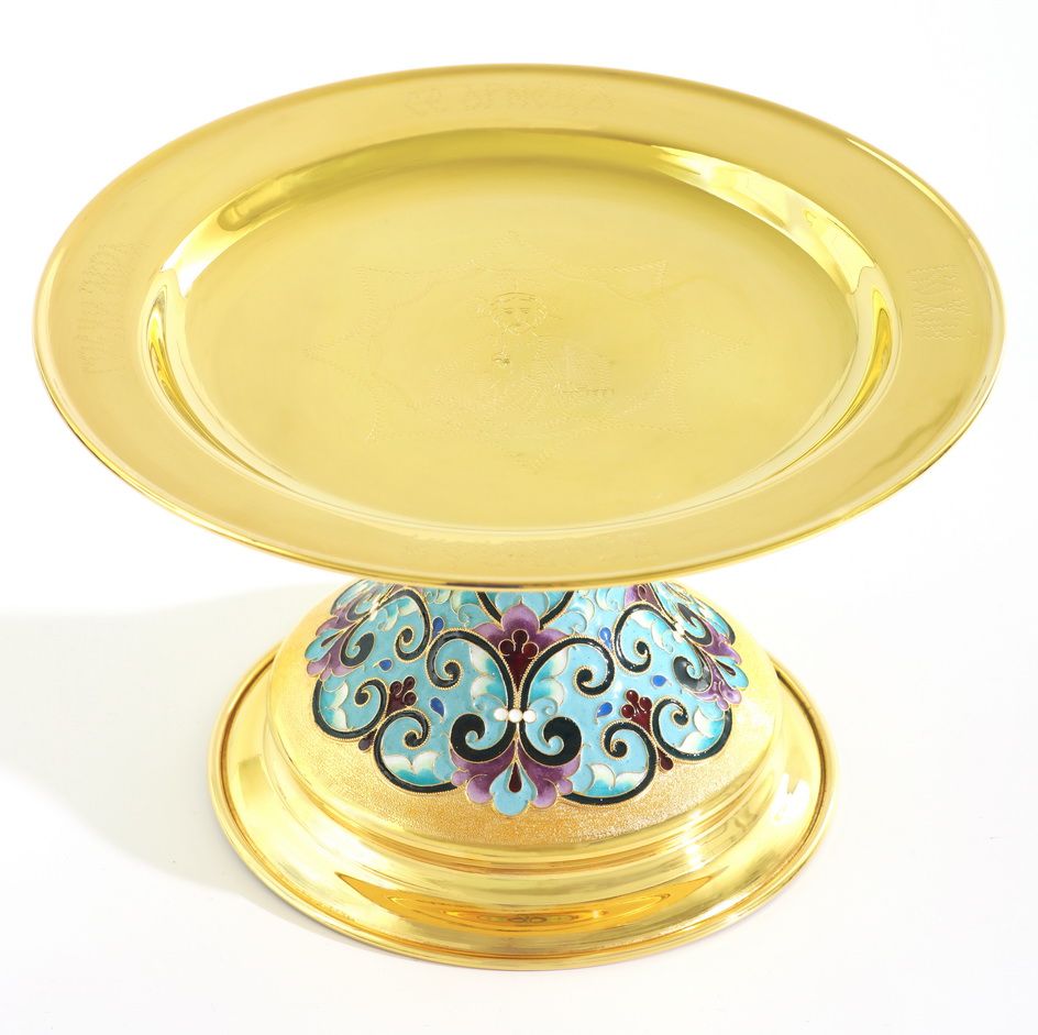 Дискос с поддискосником / ф240мм-потир 0, 5л "№13" / филигрань, эмаль, ручная гравировка / золочение