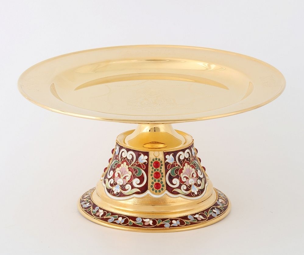 Дискос с поддискосником / ф240мм-потир 1, 0л "№9" / филигрань, эмаль, ручная гравировка / золочение