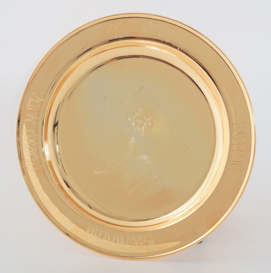 Дискос с поддискосником / ф240мм-потир 1, 0л / гальванопластика, ручная гравировка / золочение