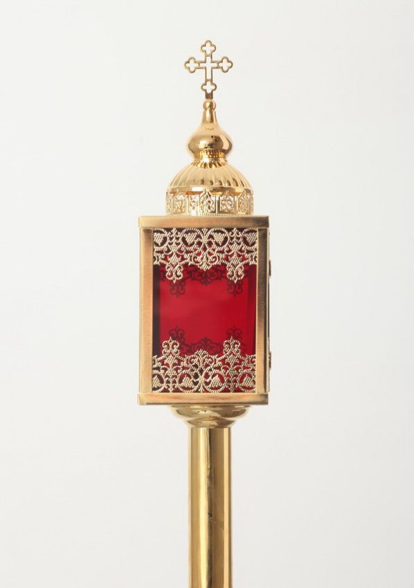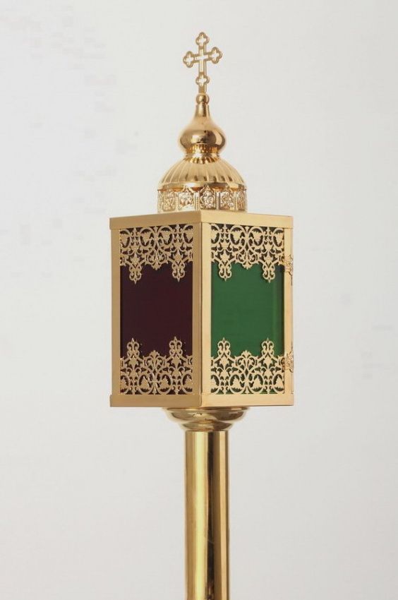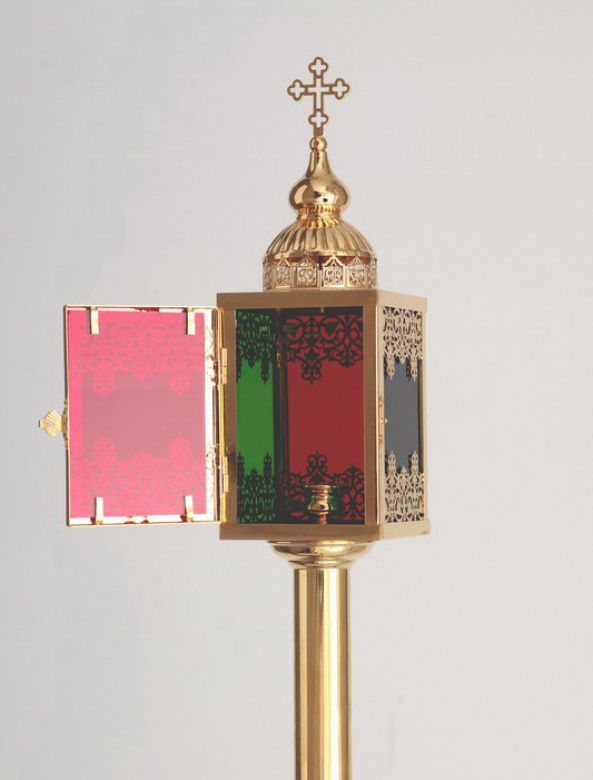 Фонарь пасхальный 4-х гранный под свечу золочение на древке