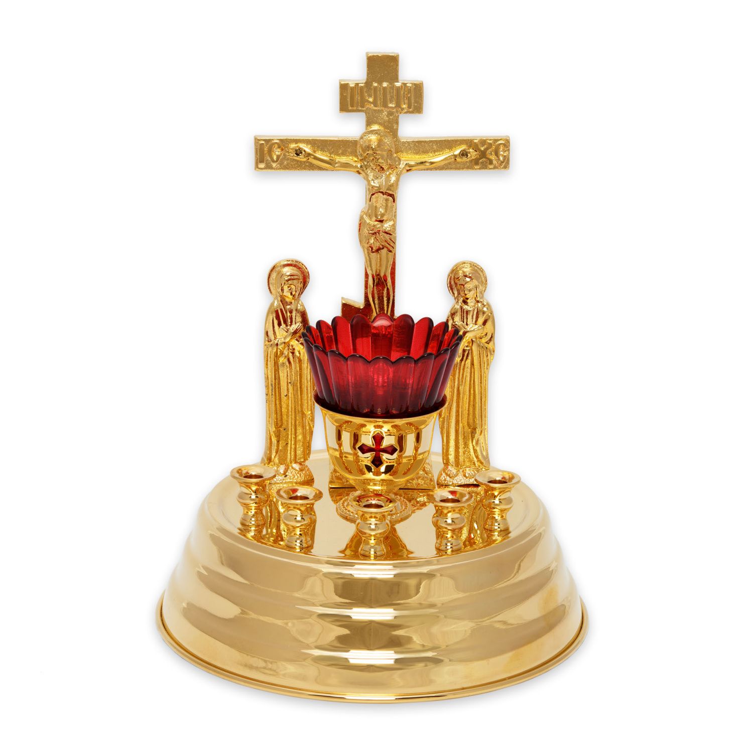 Канун №2 с золочением выполнен из тугоплавких металлов, предназначен для пяти свечей. В православной церкви свечи об упокоении усопших принято ставить перед распятием Господним, которым Спаситель избавил род человеческий от вечной смерти, а Своим Воскресением даровал человечеству вечную жизнь.