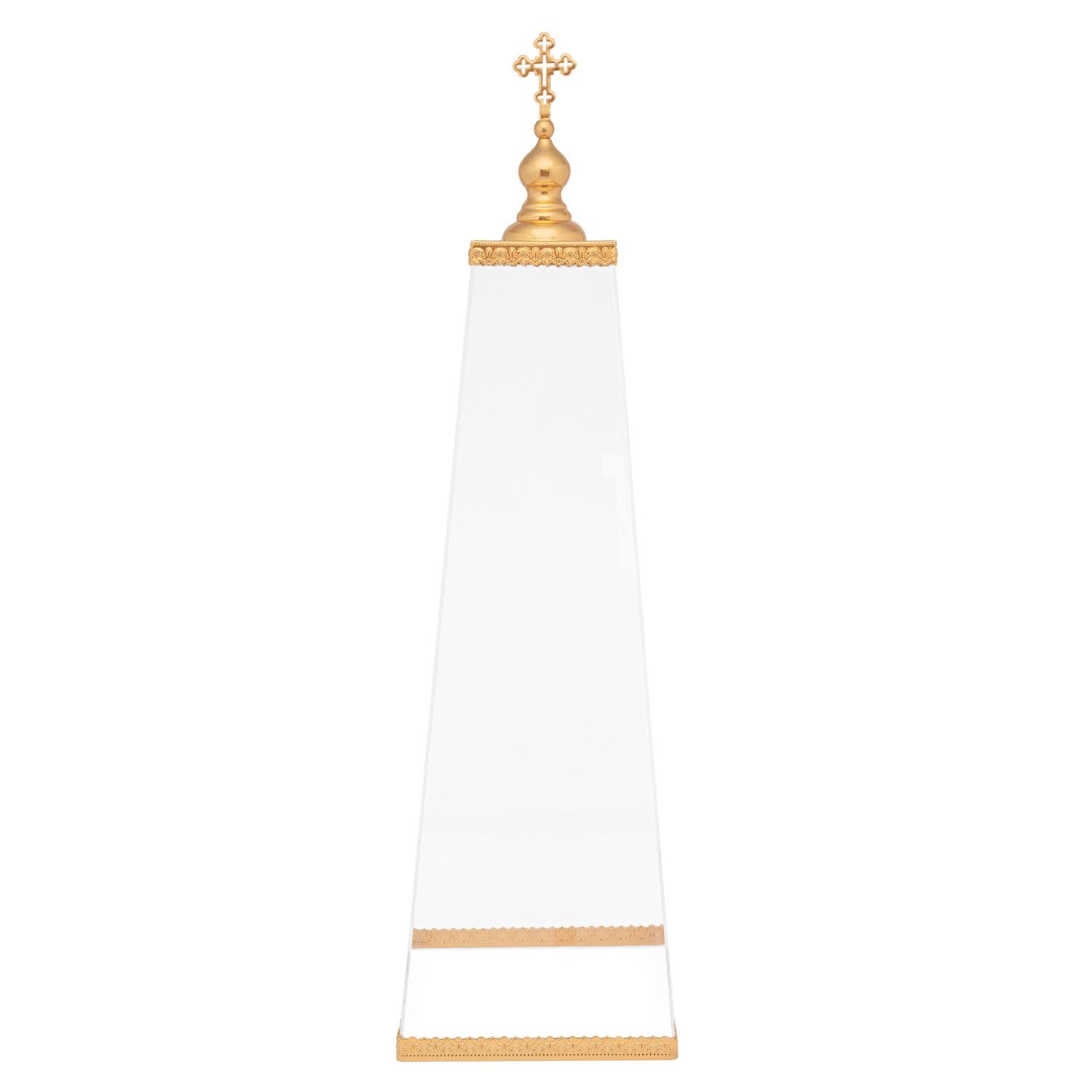 Размерность:шт;Высота, мм:790;Ширина, мм:215;Длина, мм:215;Покрытие:Золочение;Вес нетто, кг:1,65;Материал основной:Латунь, орг.стекло;Вес брутто, кг:2,2;Упаковка габариты, СМ (длина/ширина/высота):30 х 30 х 84;Упаковка опт. габариты, СМ (длина/ширина/высота):30 х 30 х 84;Упаковка (вид):Картонная коробка;Материалы основные:Латунь, орг.стекло