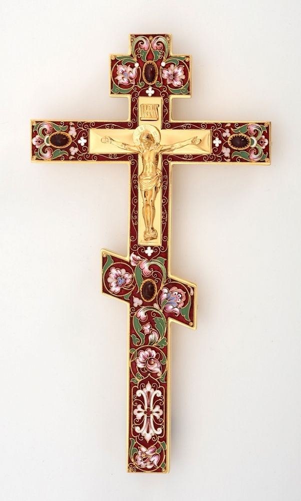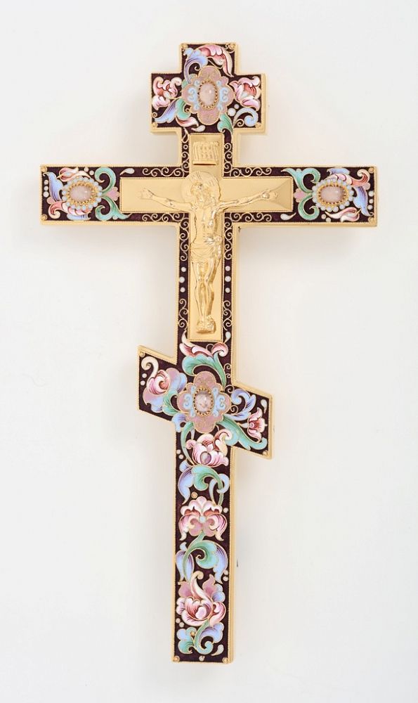 Крест напрестольный №2 филигрань, эмаль, роспись, литьевое распятие / золочение