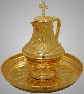 Кувшин для омовения от популярного производителя. Изделие изготовлено из одного из популярнейших драгоценных металлов – золота. Произведено в России! Кувшин дополнительно украшен позолотой и чеканкой. Подарочная упаковка в комплекте.