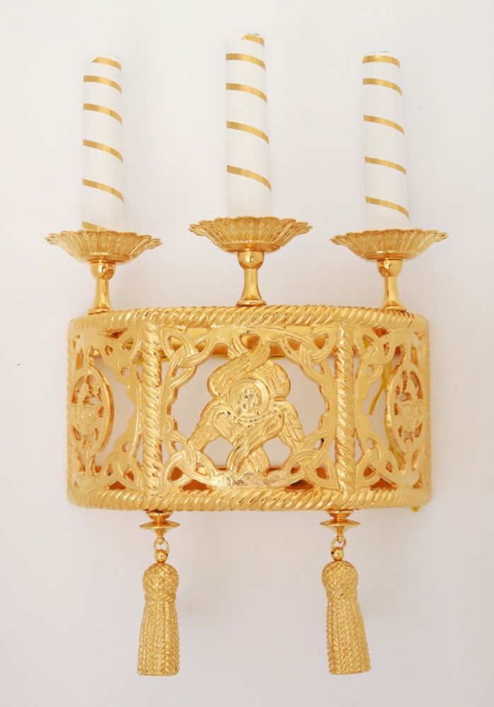 Лампада 3 свечи с херувимом золочение