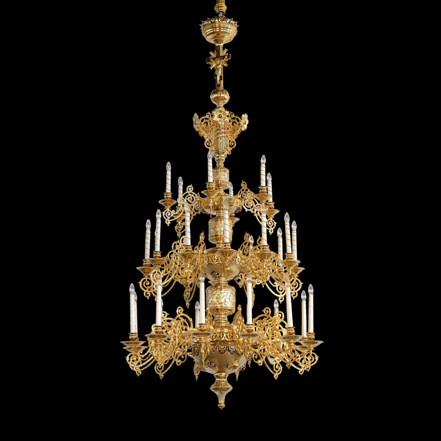Паникадило 3 яруса 30 свечей алюминий золочение