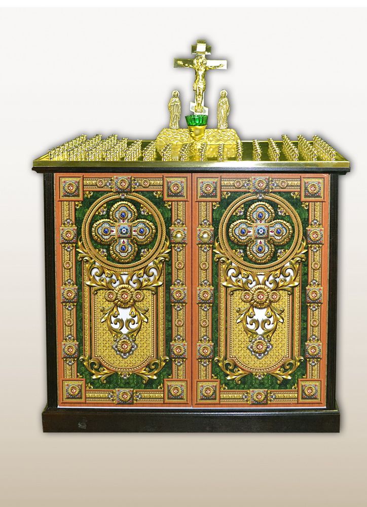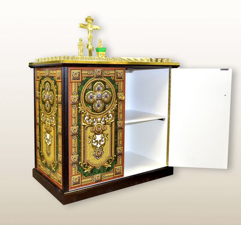 Панихидный стол Маркетри №239 на 106 свечей с дверкой и полкой