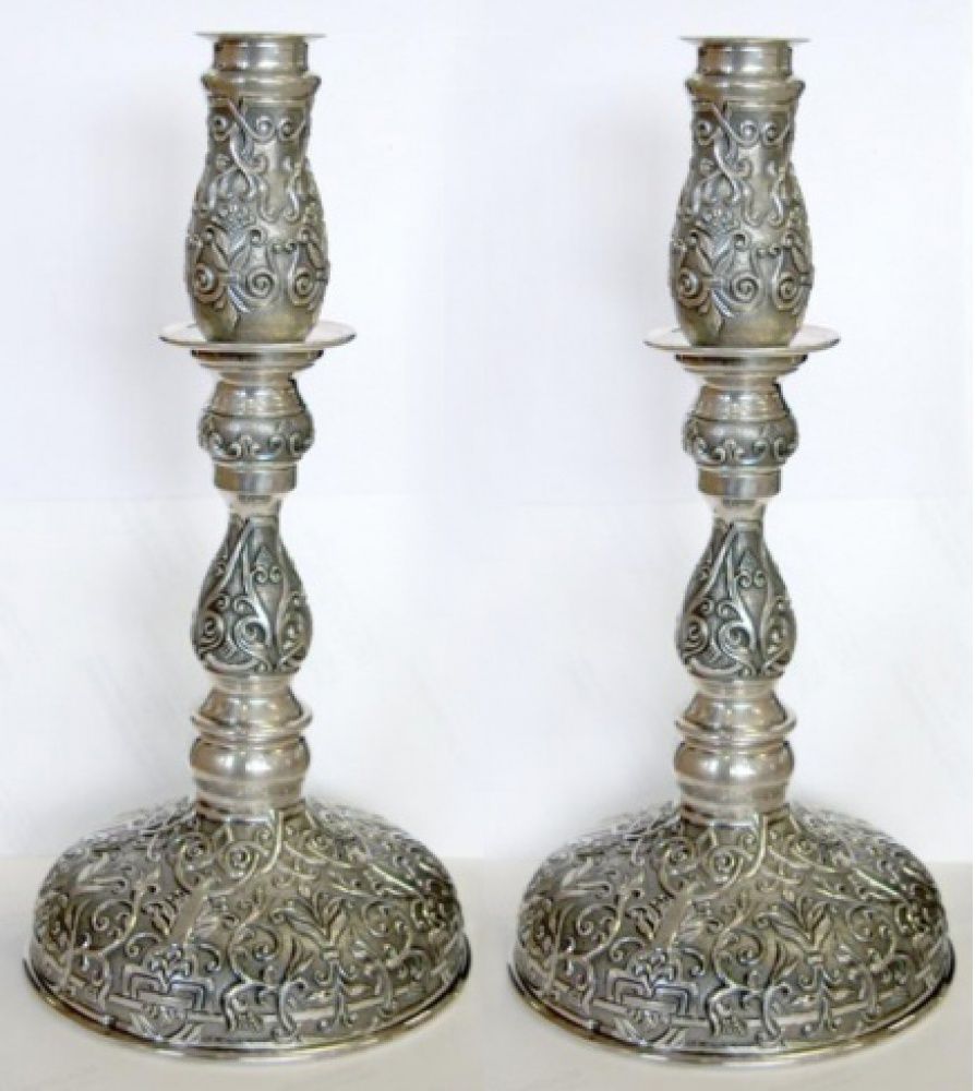 Подсвечник большой №1 / 2 свечи / чеканка / большой поддон / серебро (УИН)