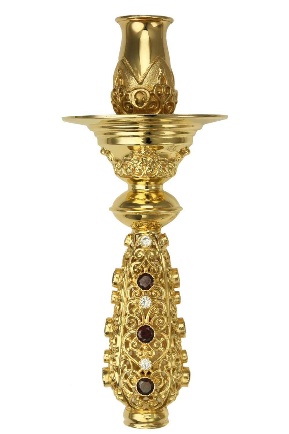 Подсвечник латунный в позолоте со вставками ручной