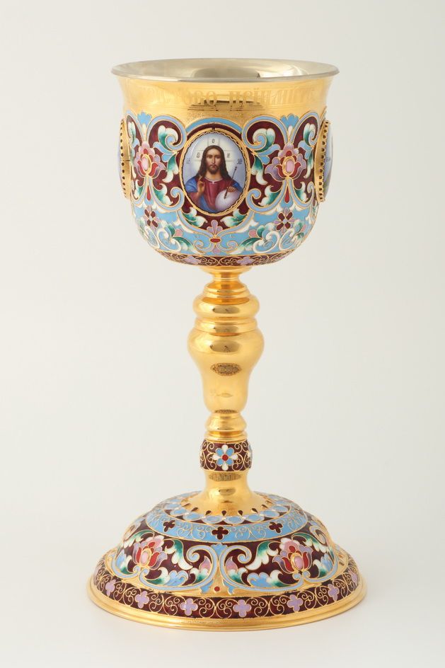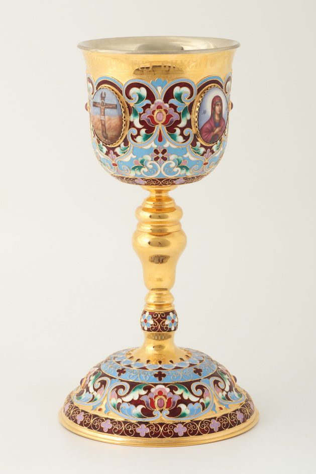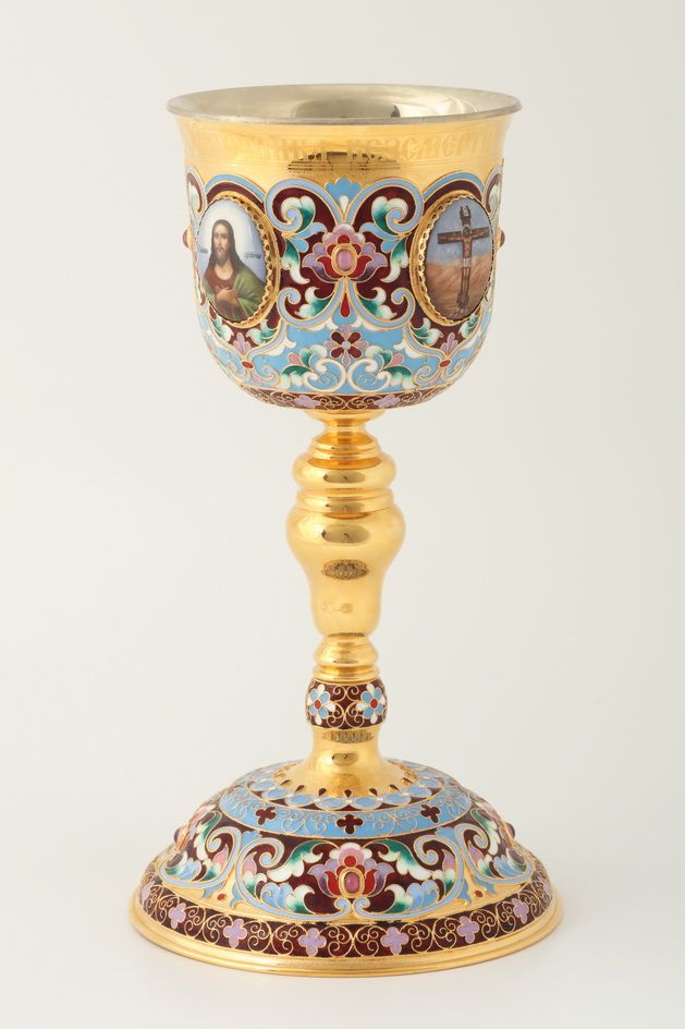 Потир 1.0л 4-финифти, филигрань, эмаль "№1" / золочение / мельхиоровый вкладыш