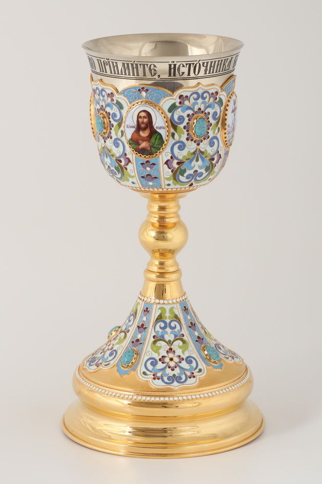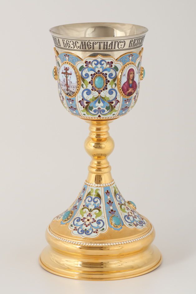 Потир 1.0л 4-финифти, филигрань, эмаль / золочение / мельхиоровый стакан