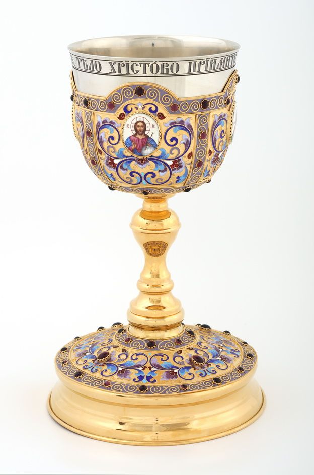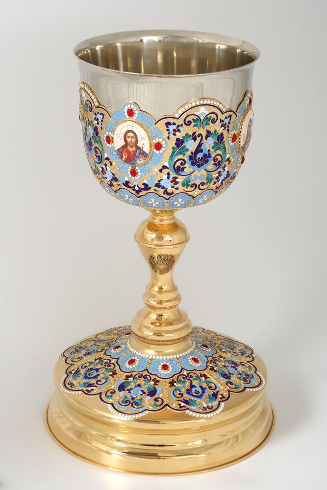 Потир 3.0л 4-финифти, филигрань, эмаль "№5" / золочение / мельхиоровый стакан