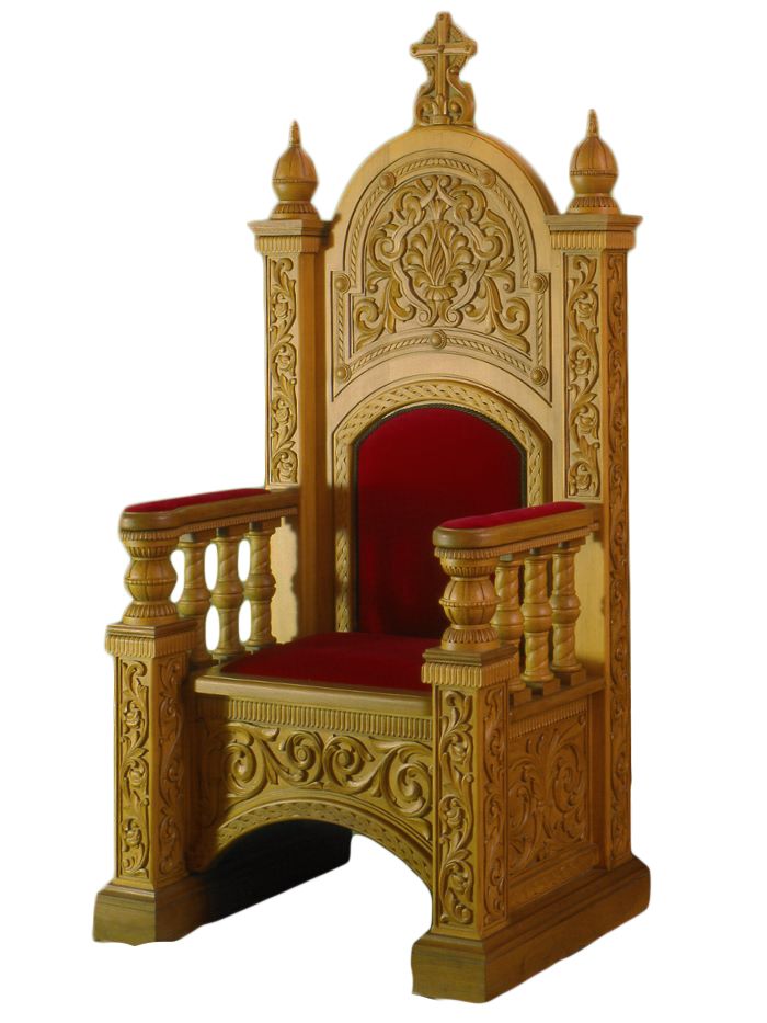 Трон с резной спинкой. Трон с резной спинкой, артикул 24102, установленный в одном из храмов Вознесенской Давидовой пустыни, пос.Новый Быт, Московская обл.. Стоимость доставки уточните у оператора